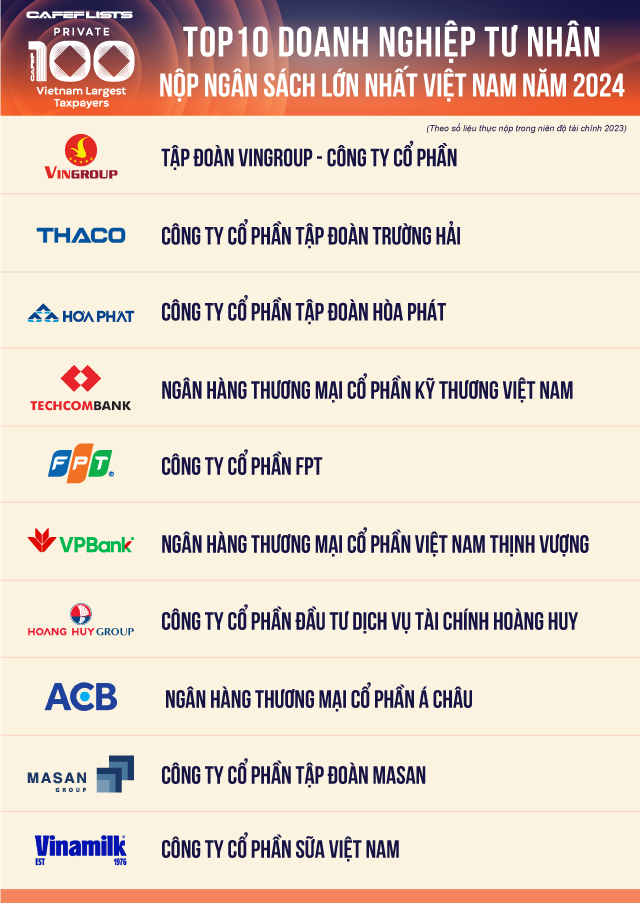 Announcement of the detailed list of PRIVATE 100: The 100 private enterprises contributing the most to Vietnam’s national budget